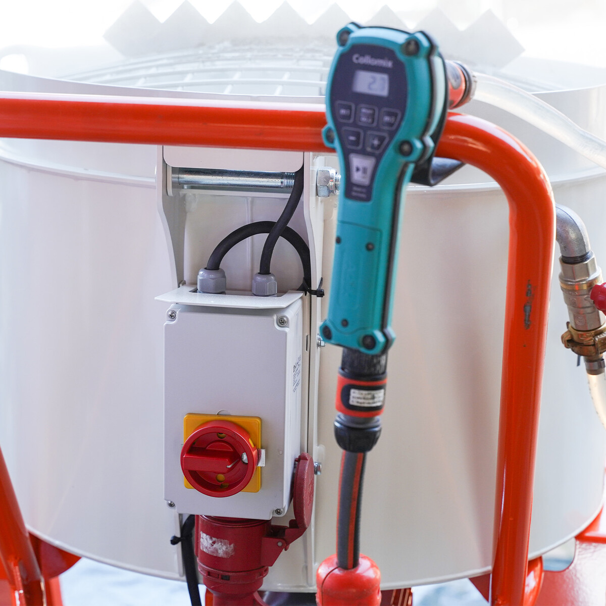 Wenn du häufig größere Mengen von Sackware oder anderen Produkten mit Wasser anrühren musst, kann eine automatische Wasserdosierung eine erhebliche Arbeitserleichterung sein. Das Collomix AQiX ist hier die perfekte Lösung.