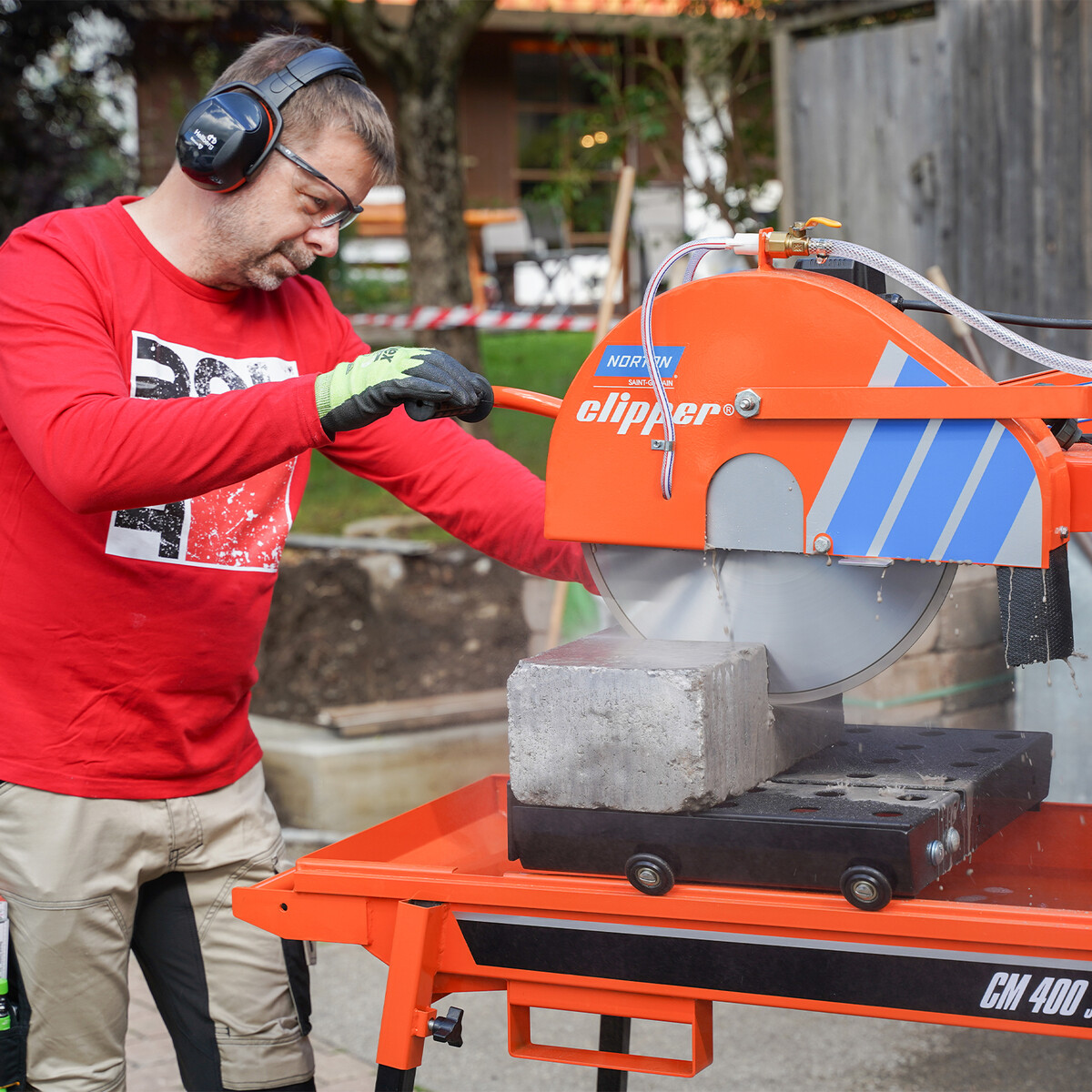 Betonsteine oder Natursteine sägen bzw. schneiden