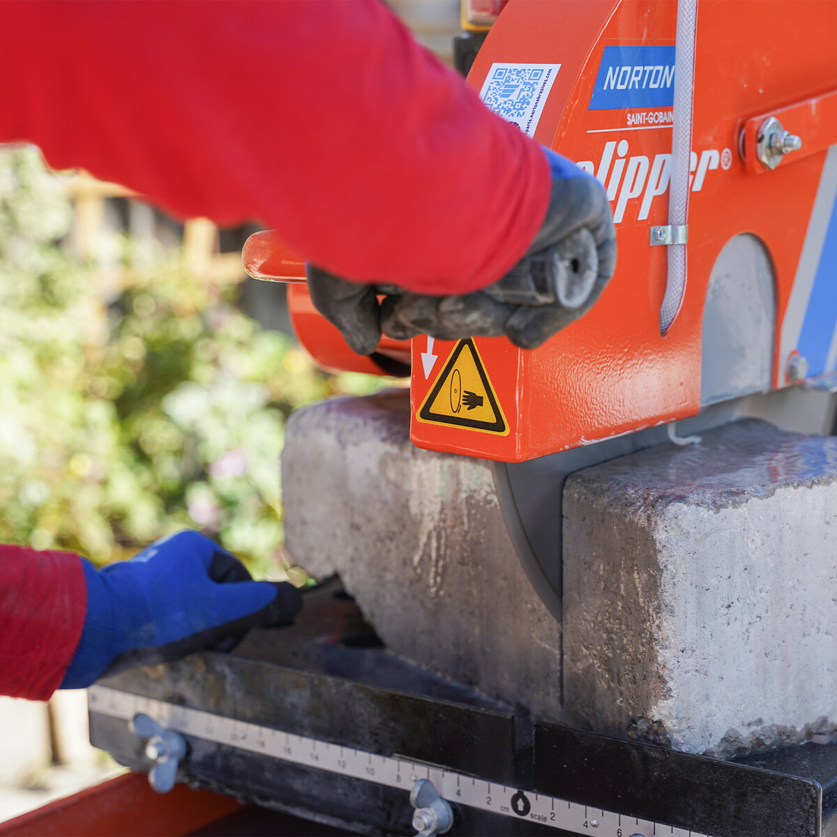 Achte auf deine eigene Sicherheit und deine Gesundheit. Trage beim Arbeiten mit einer Steinsäge passende Arbeitskleidung, Arbeitshandschuhe, eine Schutzbrille und einen für diese Arbeiten passenden Gehörschutz. Üblicherweise wird hierfür ein Gehörschutz der Schutzstufe 3 eingesetzt.
