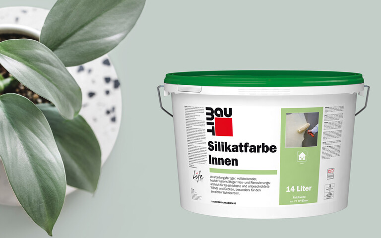 Du möchtest deinem Raum einen neuen, wohngesunden Anstrich verpassen? Dann ist die Baumit Silikatfarbe Innen als bestens geeignet. Möchtest du deine vier Wände neu verputzen und kreativ strukturieren, empfehlen wir dir den Baumit KlimaDekor. Er ist verarbeitungsfertig im Eimer und auf Wunsch in Weiß oder in vielen verschiedenen Pastelltönen erhältlich. Beide Produkte werden regelmäßig alle 2 Jahre nach den strengen Prüfkriterien vom eco-Institut in Köln auf Schadstoffe geprüft und zertifiziert.