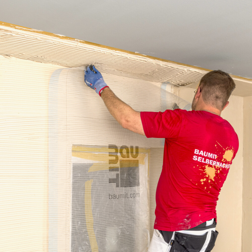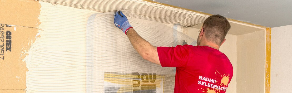 Lege das Armierungsgewebe unmittelbar nach dem Auftragen der Baumit-Spachtelmasse in den frischen Spachtel ein.