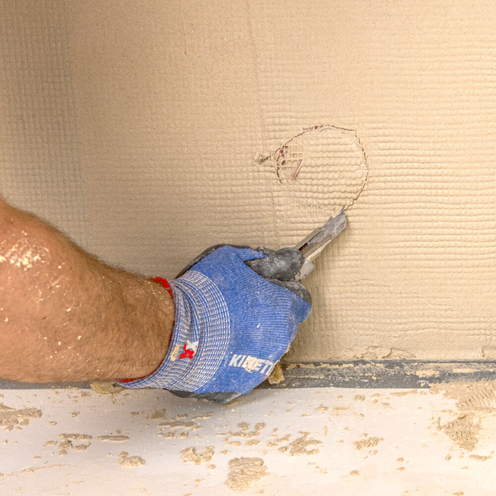 Im Bereich von Fenstern, Türen oder anderen Kanten schneidest du das Armierungsgewebe mit einem maximalen Abstand von 10 mm zur Kante ab.