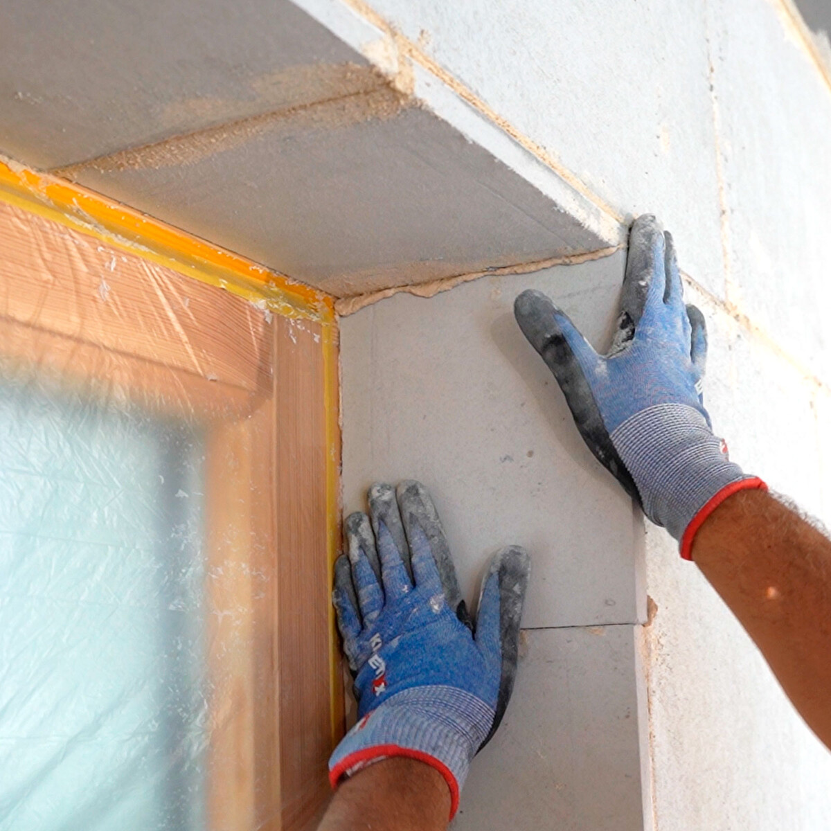 In dieser Anleitung zeigen wir dir Schritt für Schritt, wie du den Anschlusskeil und die Laibungsplatten fachgerecht verklebst. Die Verarbeitungsanleitung ist auch als Video verfügbar.