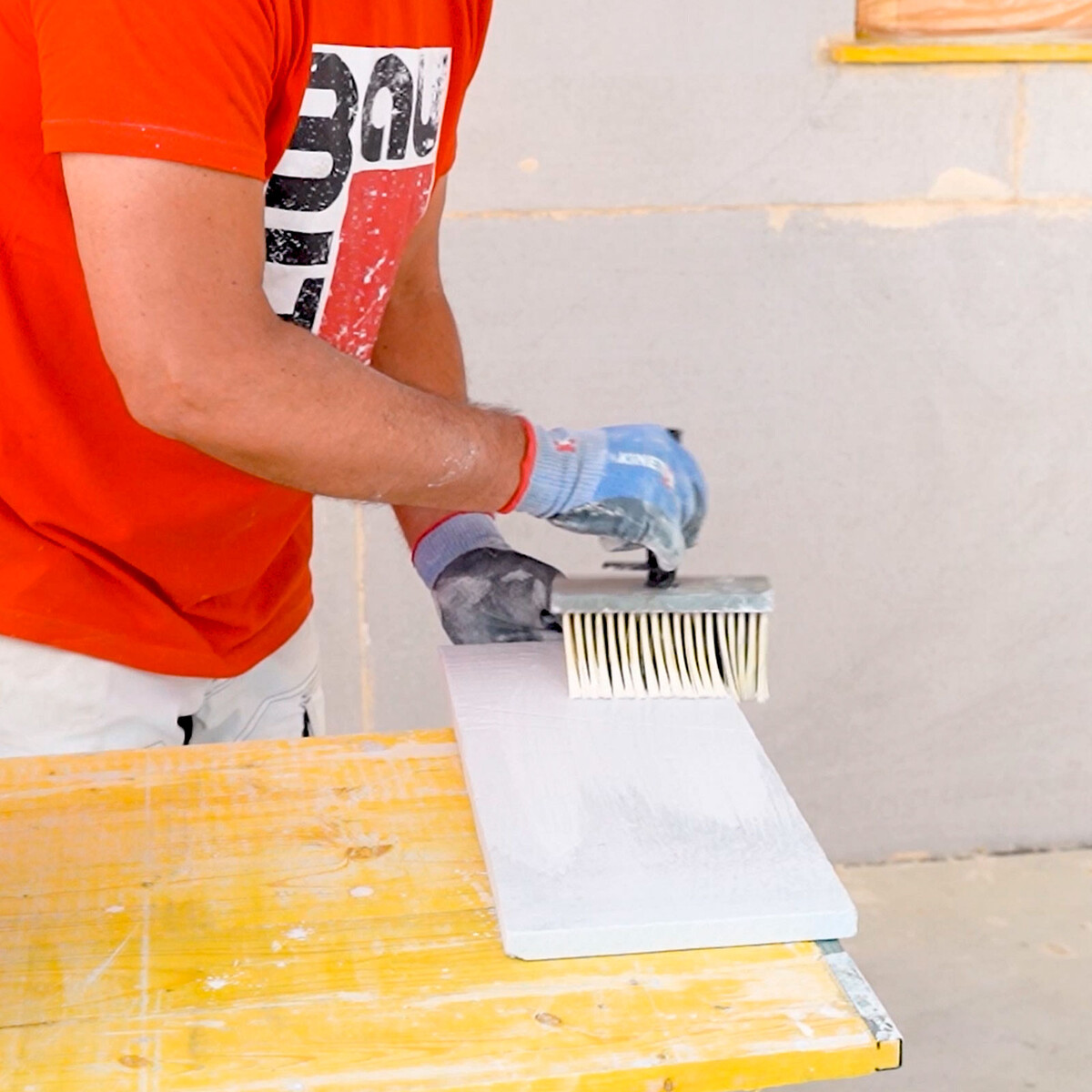 Beispiel: Mit einer 6-mm-Zahnung erzielst du nach dem Glätten eine Auftragsdicke von etwa 3 mm.
