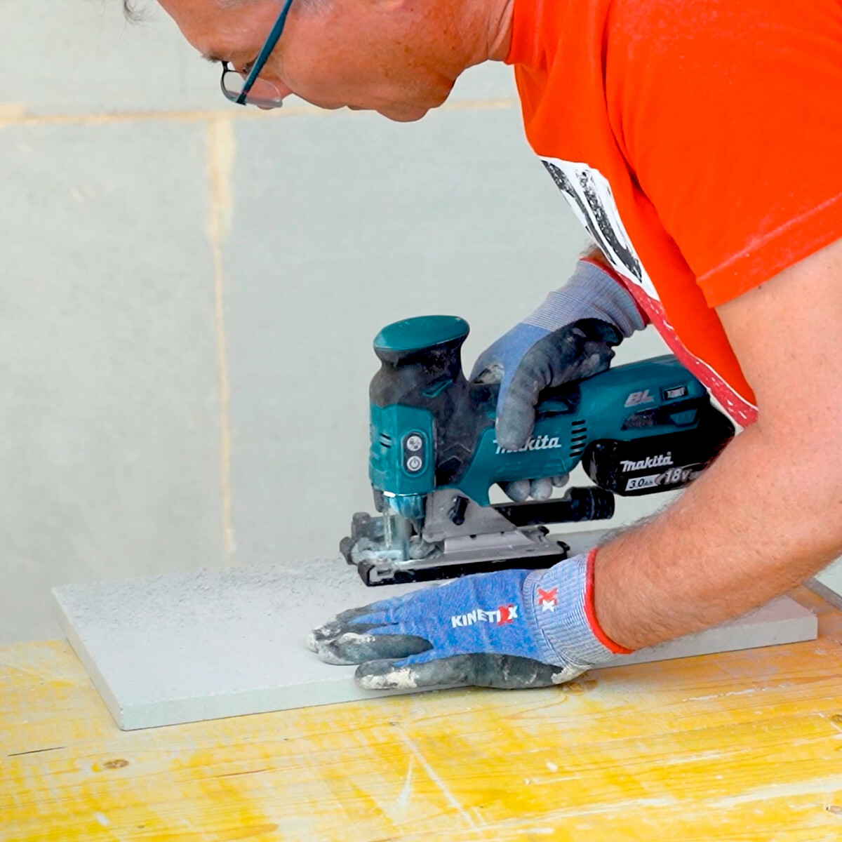 Die Kalziumsilikat-Laibungsplatten lassen sich mit einer Stichsäge oder einer kleinen Handkreissäge einfach zuschneiden.